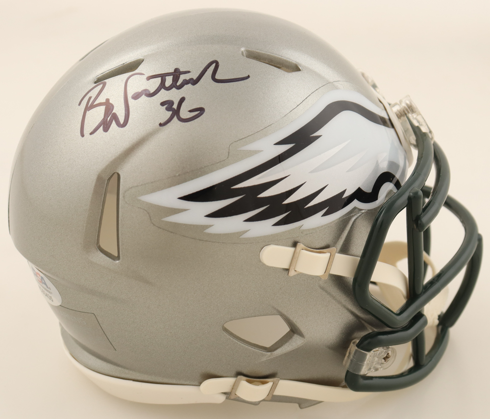Riddell Philadelphia Eagles Flash Alternate Speed mini helmet. Hand-signed by Brian Westbrook.