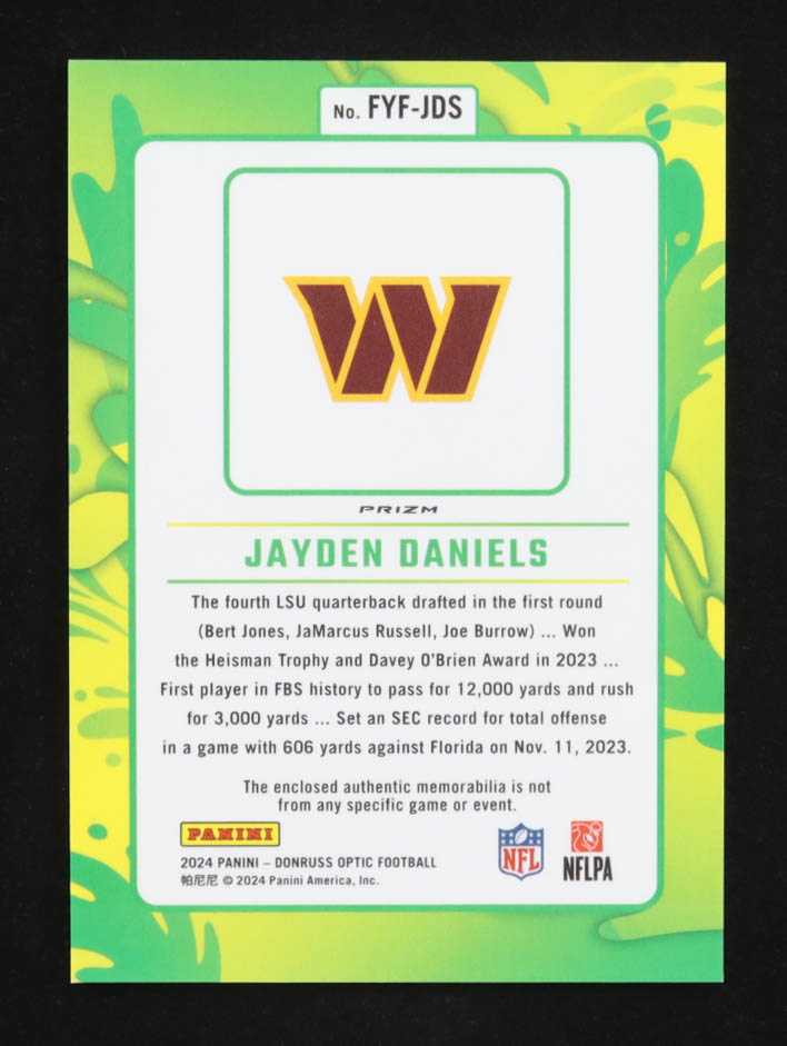 Jayden Daniels 2024 Donruss Optic First Year Fresh Jerseys Blue Hyper #17 RC