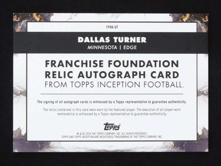 Dallas Turner 2024 Topps Inception Franchise Foundation Relic Autographs Magenta #FFRADT #05/35 RC