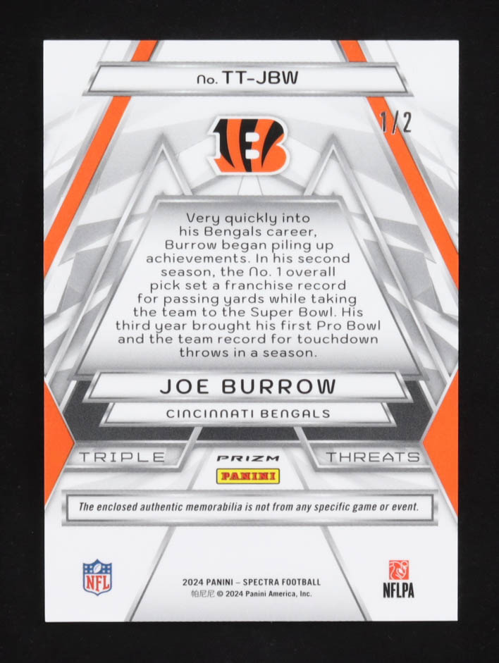 Joe Burrow 2024 Panini Spectra Triple Threats Materials Nebula #2 #1/2