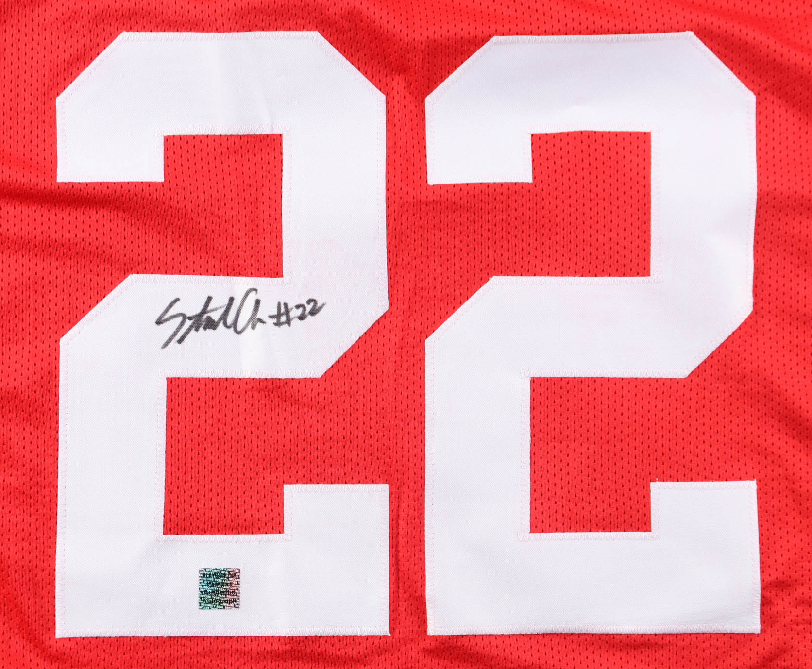 Custom jersey. Everything is sewn on, size XL. Hand-signed by Steele Chambers. Please note, glue is visible through the reverse number.