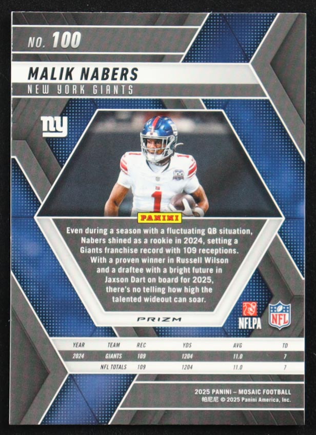 Malik Nabers 2025 Panini Mosaic Mosaic Red #100
