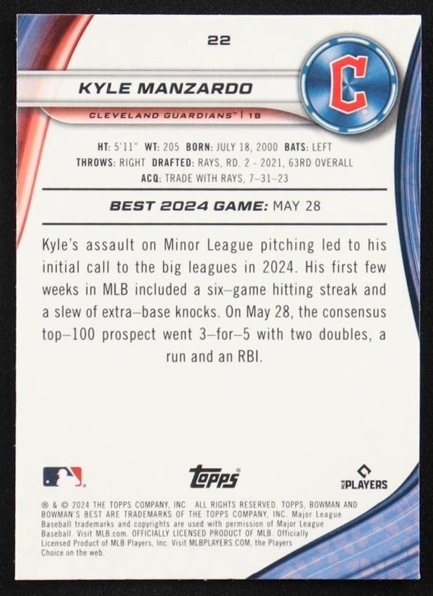 Kyle Manzardo 2024 Bowman's Best Purple Refractors #22 #192/250 RC