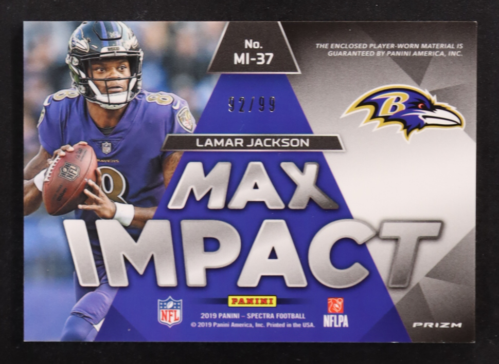 Lamar Jackson 2019 Panini Spectra Max Impact Materials Neon Blue #37 #92/99