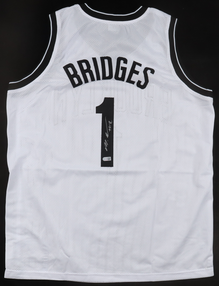 Custom jersey with everything sewn on, size XL. Hand-signed by Mikal Bridges.