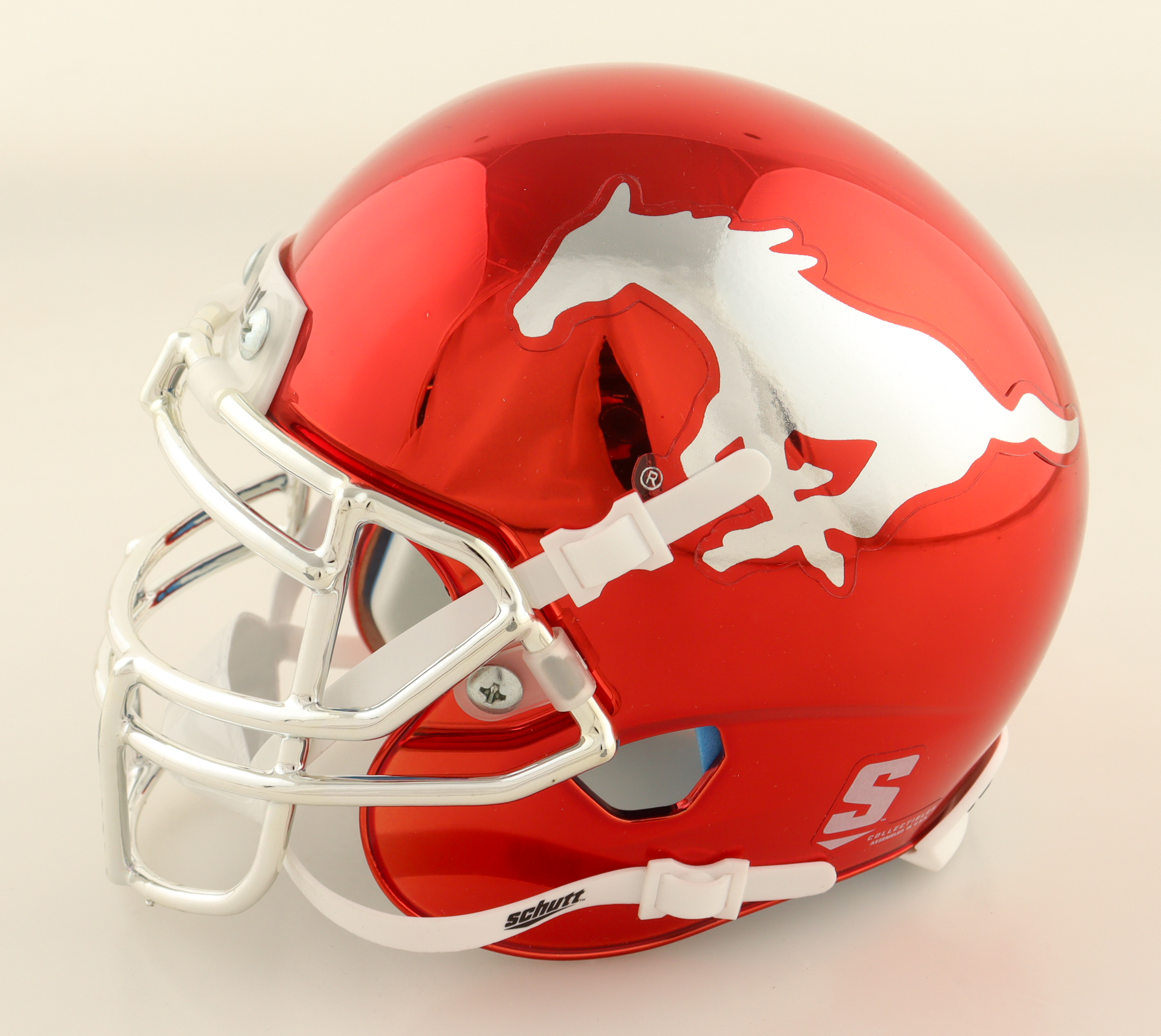 Schutt SMU Mustangs chrome mini helmet. Hand-signed by Courtland Sutton.