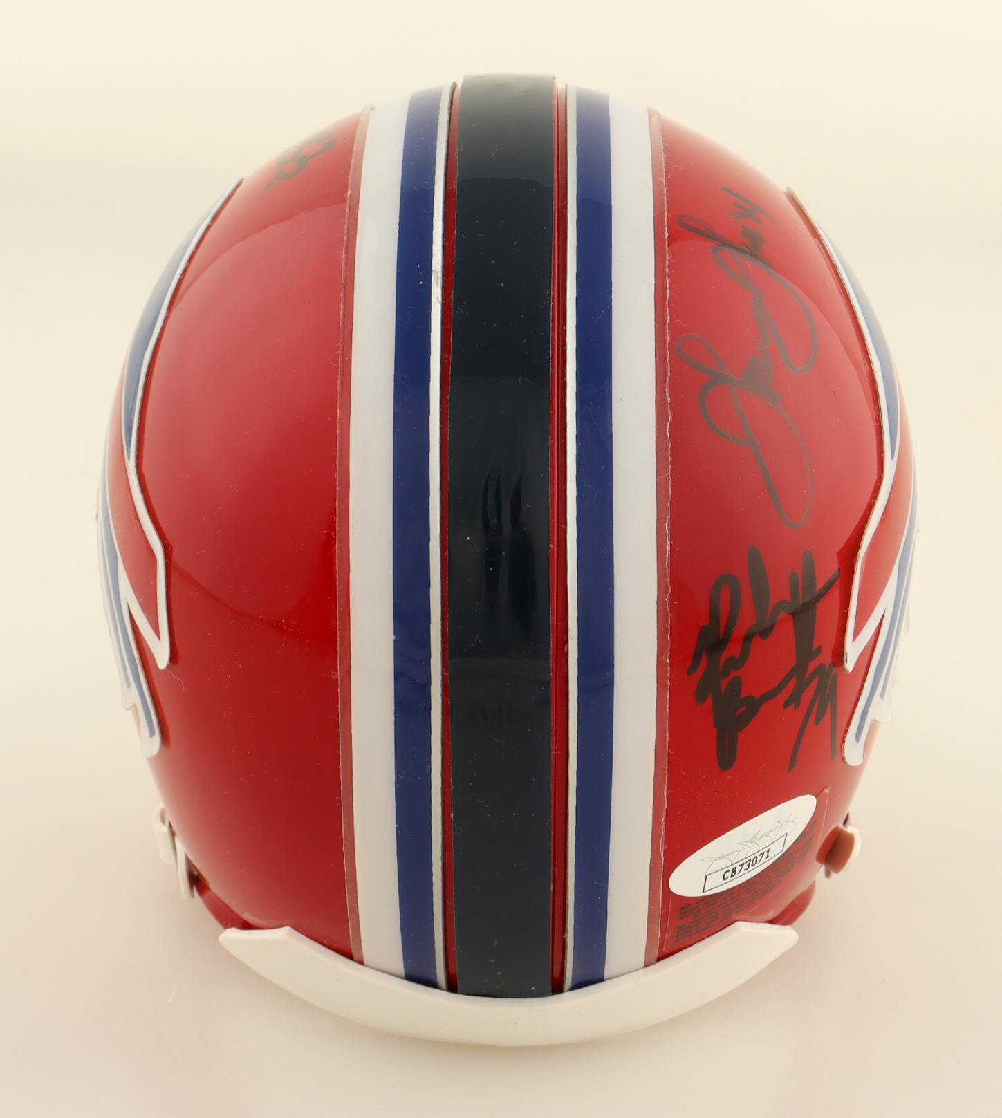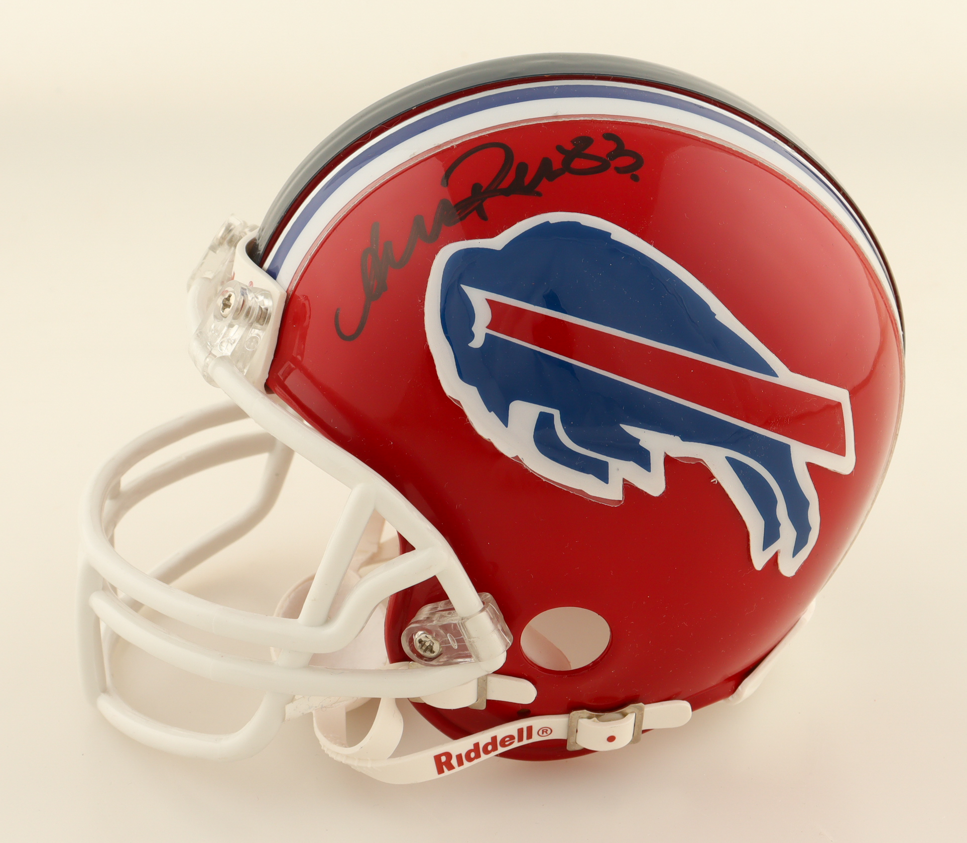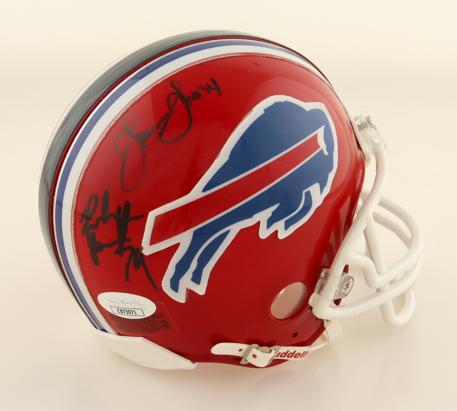 Riddell Buffalo Bills throwback mini helmet. Hand-signed by Andre Reed (HOF), and Thurman Thomas (HOF).
