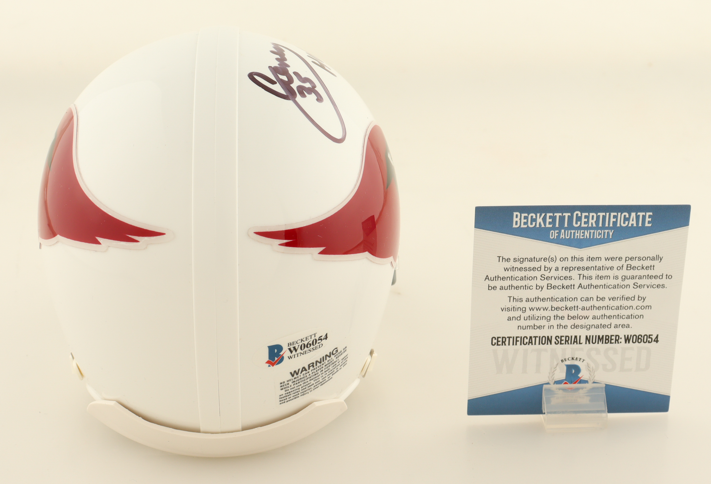 Riddell Arizona Cardinals mini helmet. Hand-signed and inscribed by Aeneas Williams