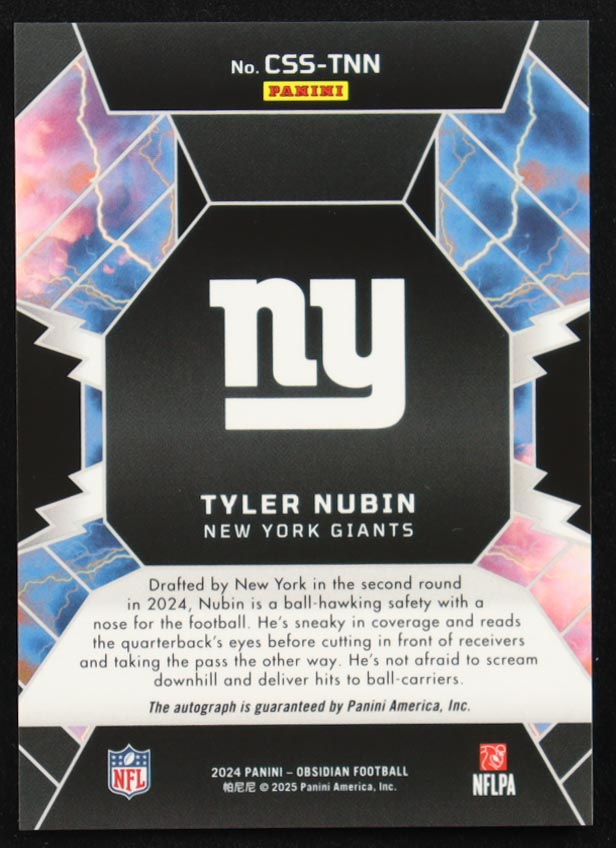 Tyler Nubin 2024 Panini Obsidian Cosmic Storm Signatures #15 RC