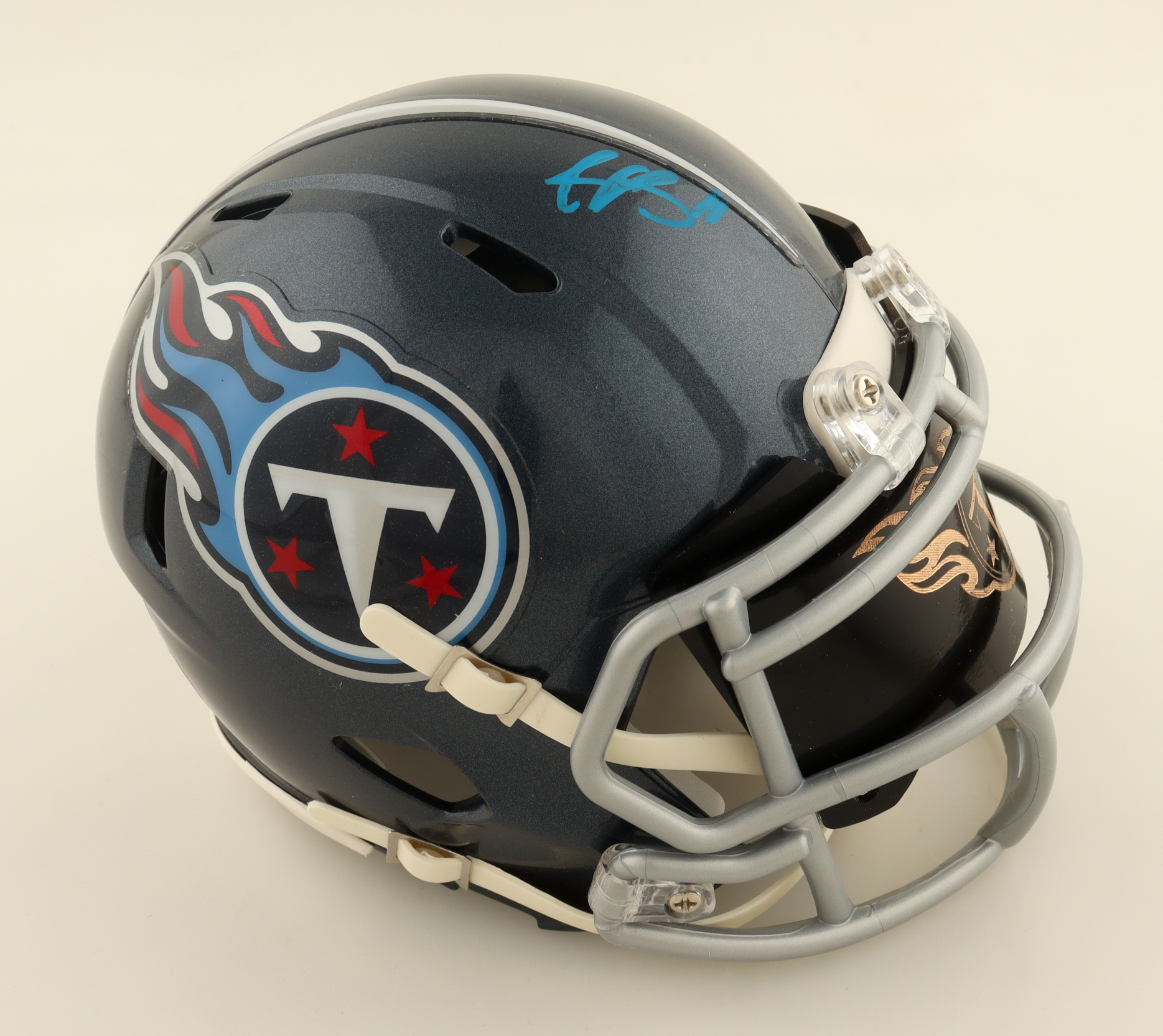 Riddell Tennessee Titans Speed mini helmet has been hand-signed by A. J. Brown.