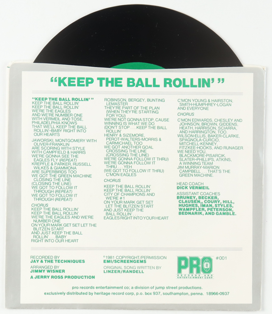 Philadelphia Eagles 'Keep The Ball Rollin'" 1/3 RPM Vinyl Record with Full Original Sleeve