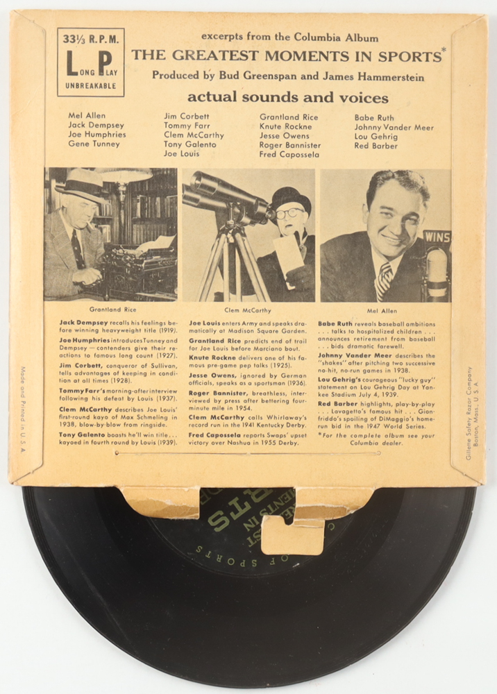1955 Greatest Moments in Sports 1/3 RPM Vinyl Record with Full Original Sleeve