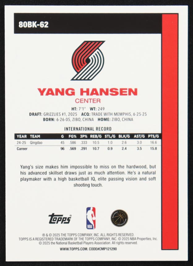 Yang Hansen 2025-26 Topps '80-81 Topps #80BK62 RC