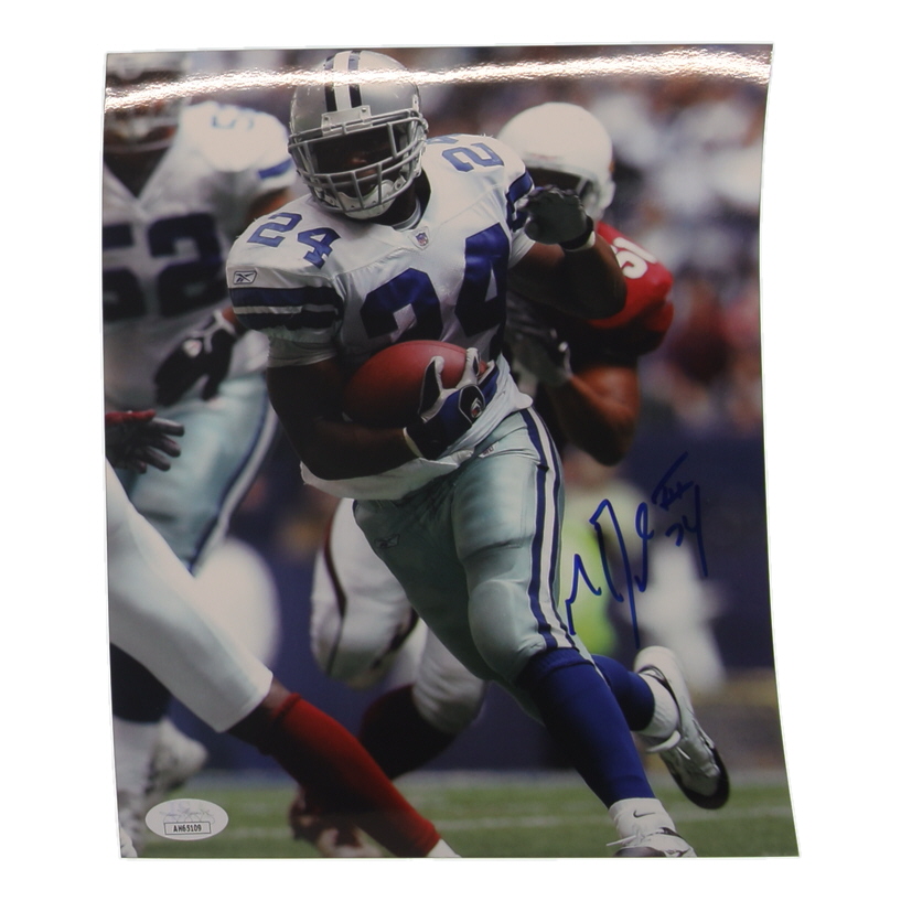 Photo measures 8" x 10" in size and has been hand-signed by Marion Barber III (D. 2022, Dallas Cowboys).