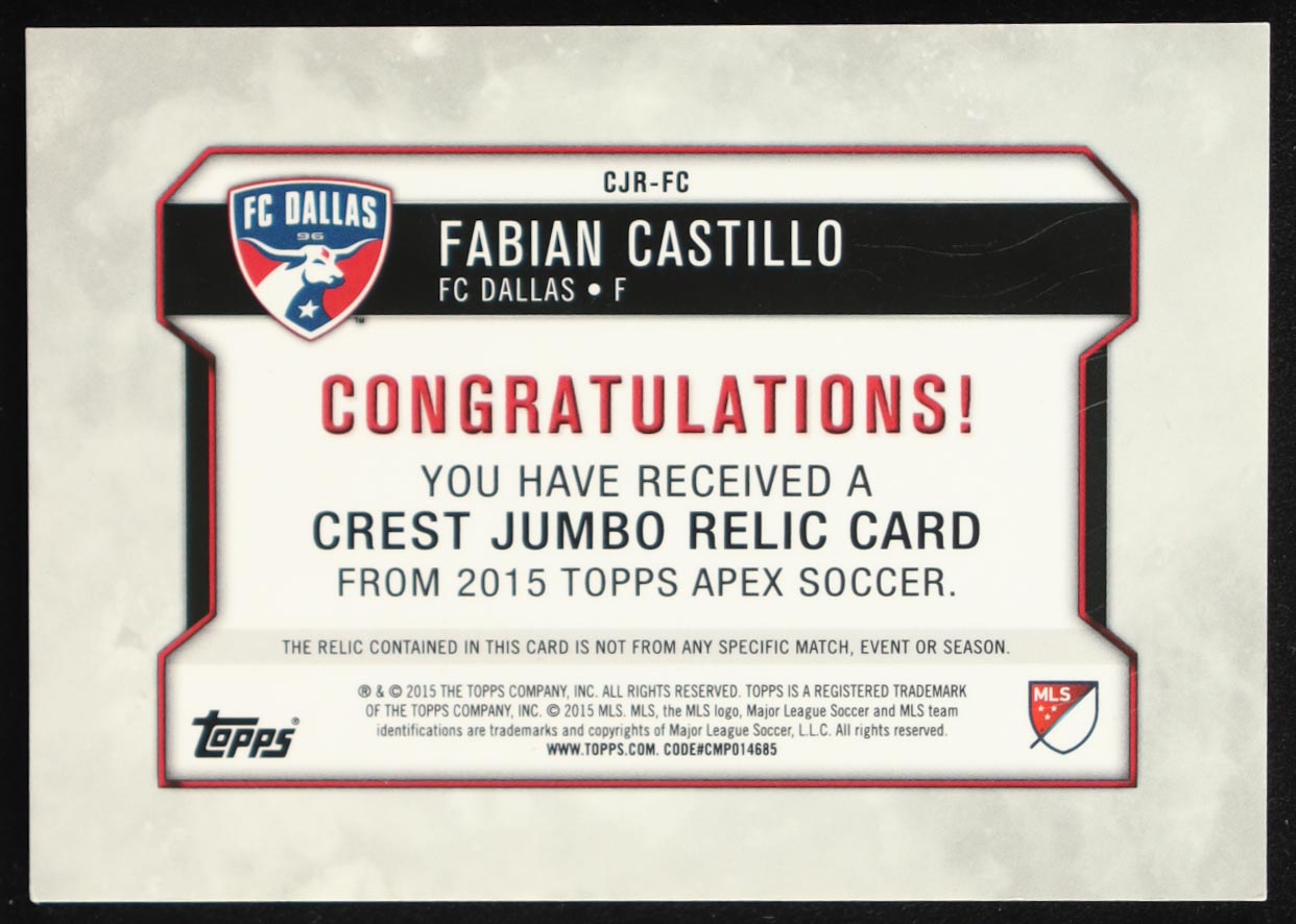 Fabian Castillo 2015 Topps Apex MLS Crest Relics Gold #CJRFC #7/40