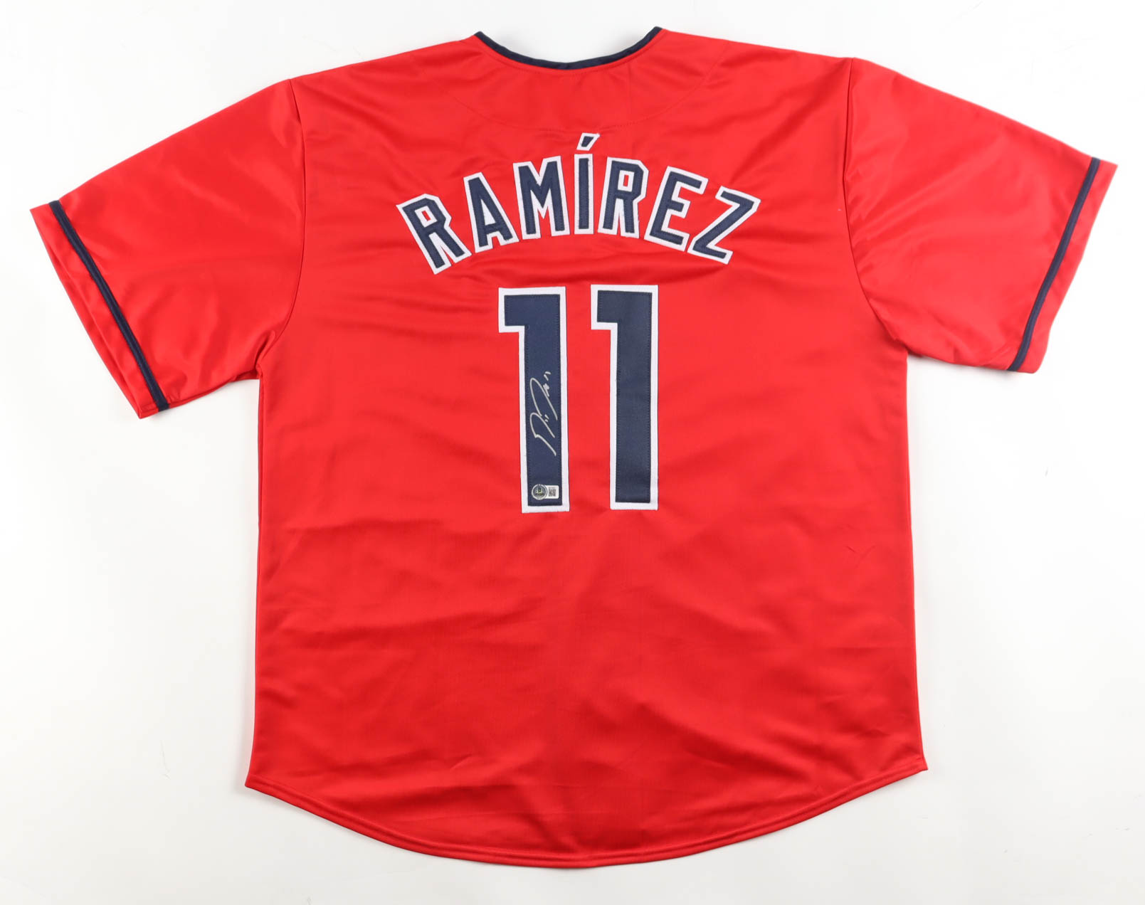 Custom jersey with everything sewn on, size XL. Hand-signed by José Ramírez.