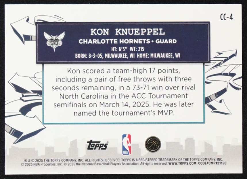 Kon Knueppel 2025-26 Topps Clutch City Prospects #CC4 RC