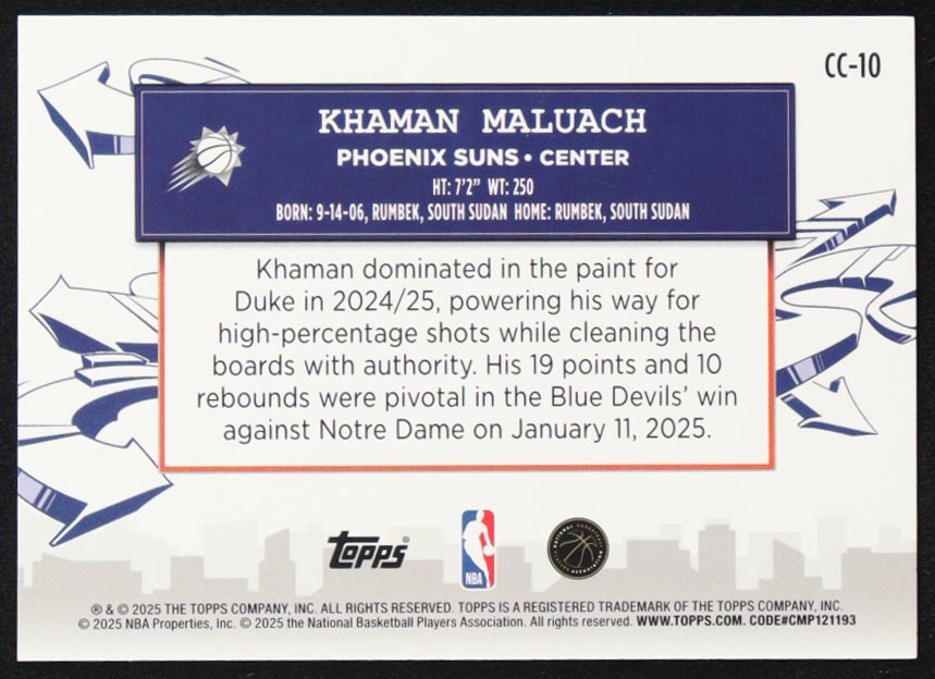 Khaman Maluach 2025-26 Topps Clutch City Prospects #CC10 RC