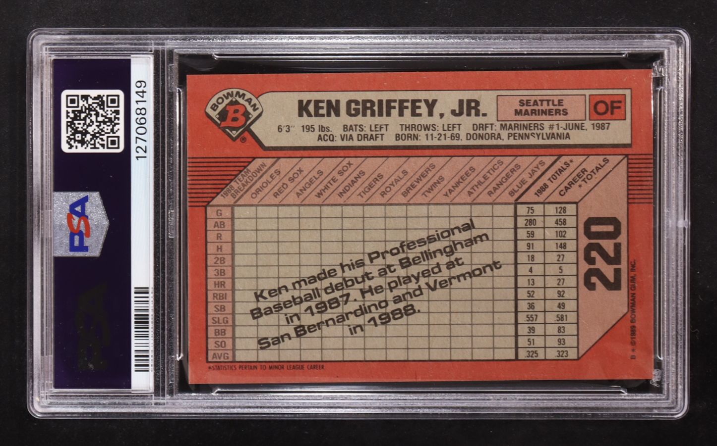 Ken Griffey Jr. 1989 Bowman #220 RC (PSA 9)