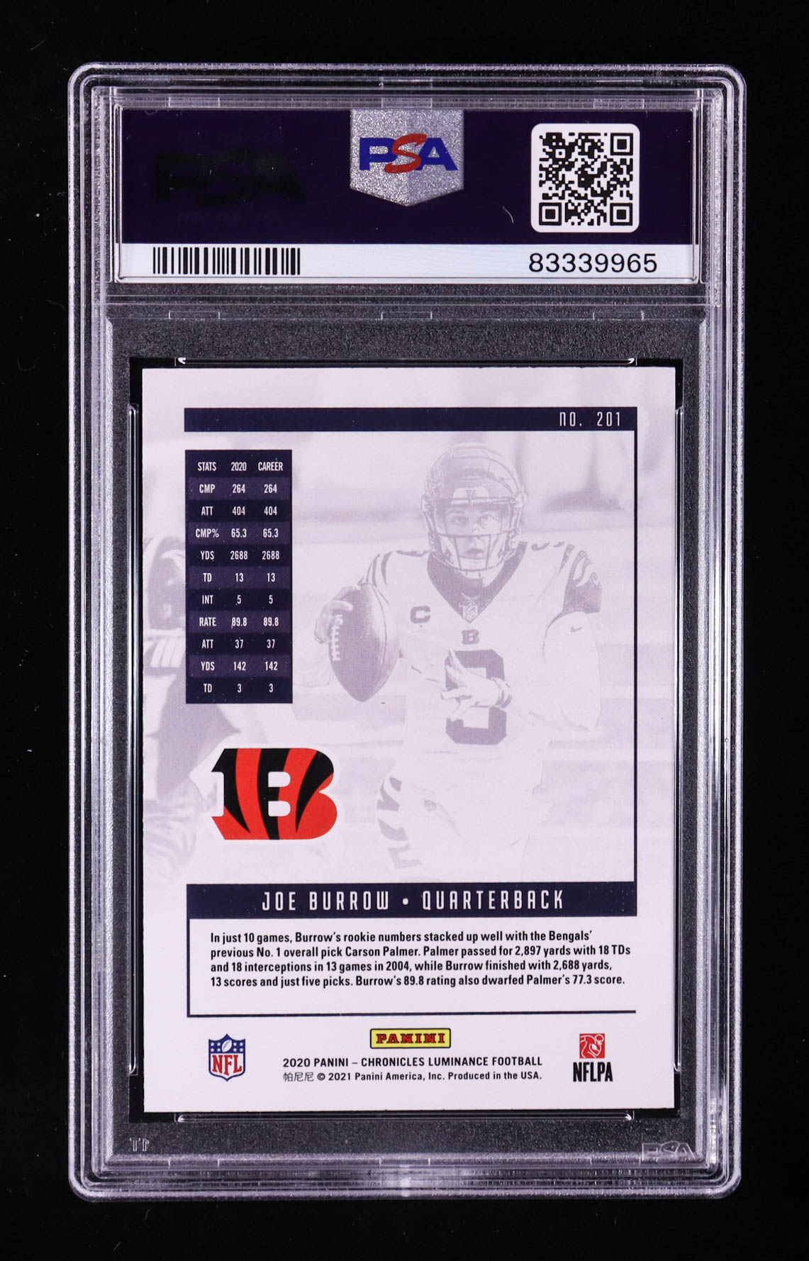 Joe Burrow 2020 Panini Chronicles Luminance #201 RC (PSA 10)