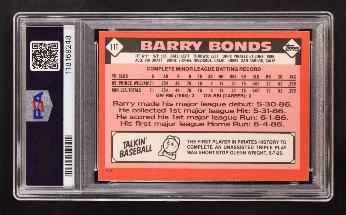 Barry Bonds 1986 Topps Traded #11T XRC (PSA 9)