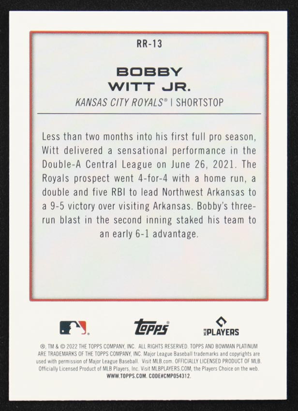 Bobby Witt Jr. 2022 Bowman Platinum Renowned Rookies #RR13 RC