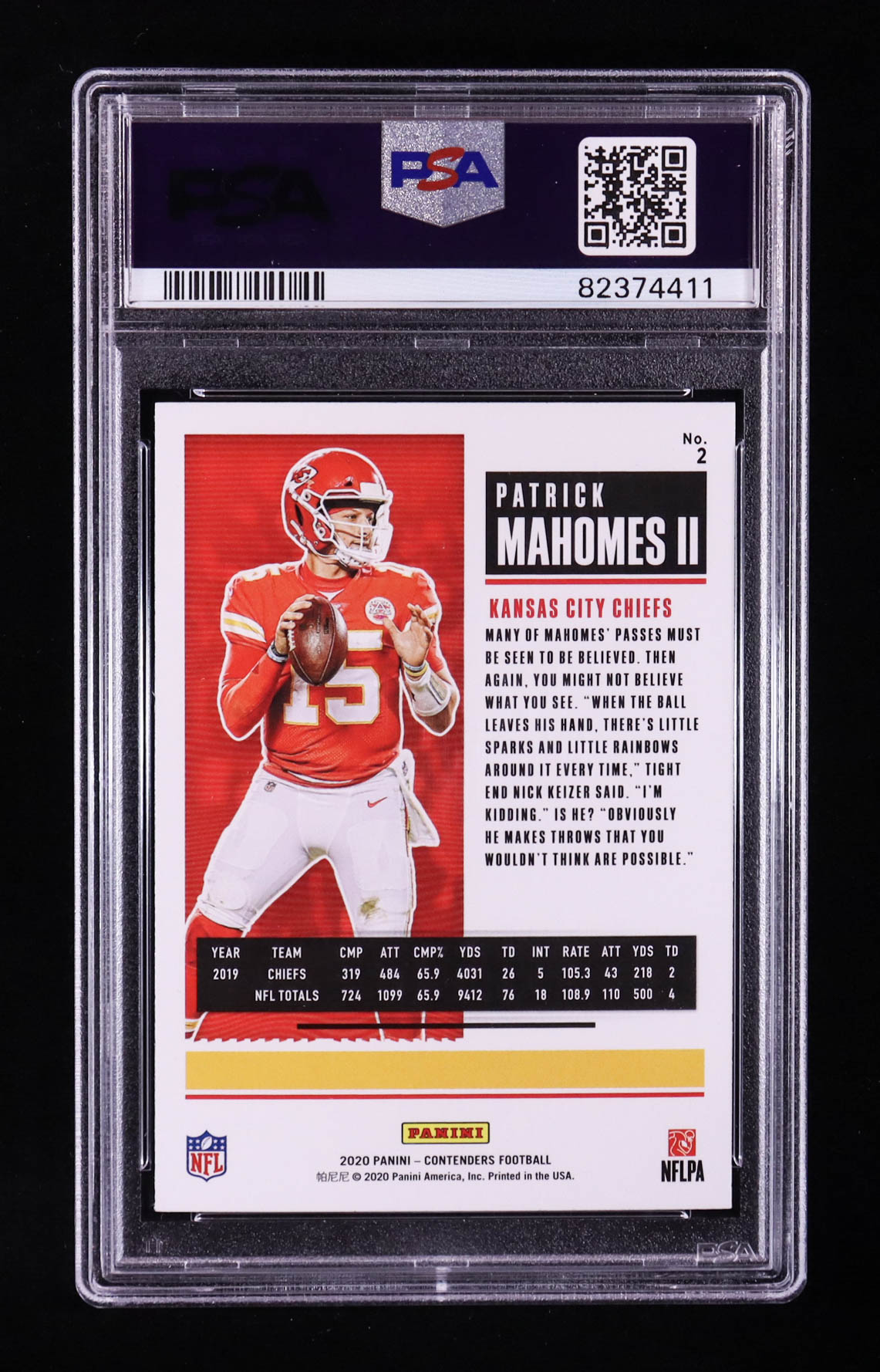 Patrick Mahomes 2020 Panini Contenders Season Ticket #2 (PSA 10)