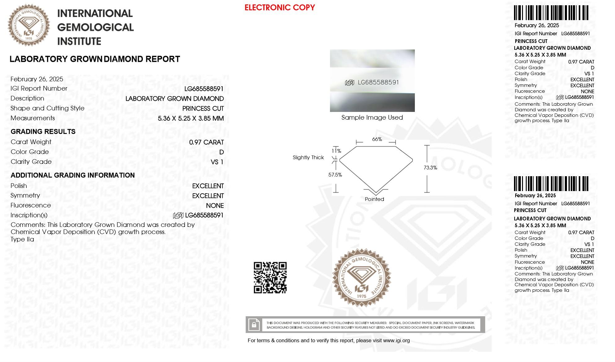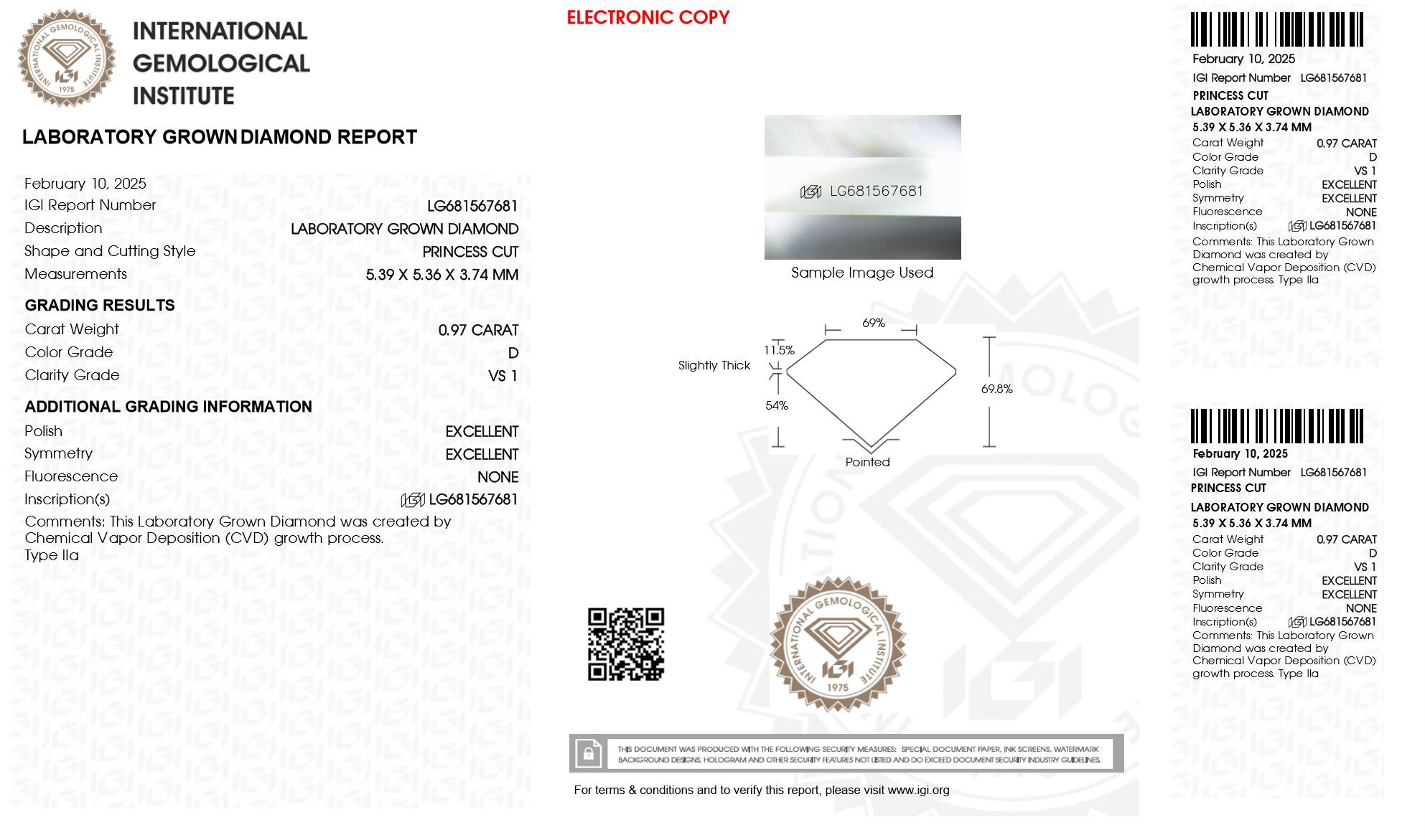 The diamonds feature precision laser inscriptions with the IGI certificate numbers, ensuring authenticity and traceability.