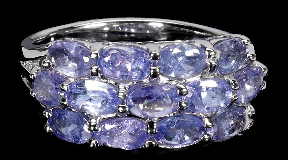 Up for auction is a brand new Ladies Fashion Tanzanite Ring set in rhodium over sterling silver. The ring features multiple oval shape faceted tanzanites arranged across the top of the band, creating a bold and elegant statement look. Comes with a UGL appraisal for insurance purposes.
