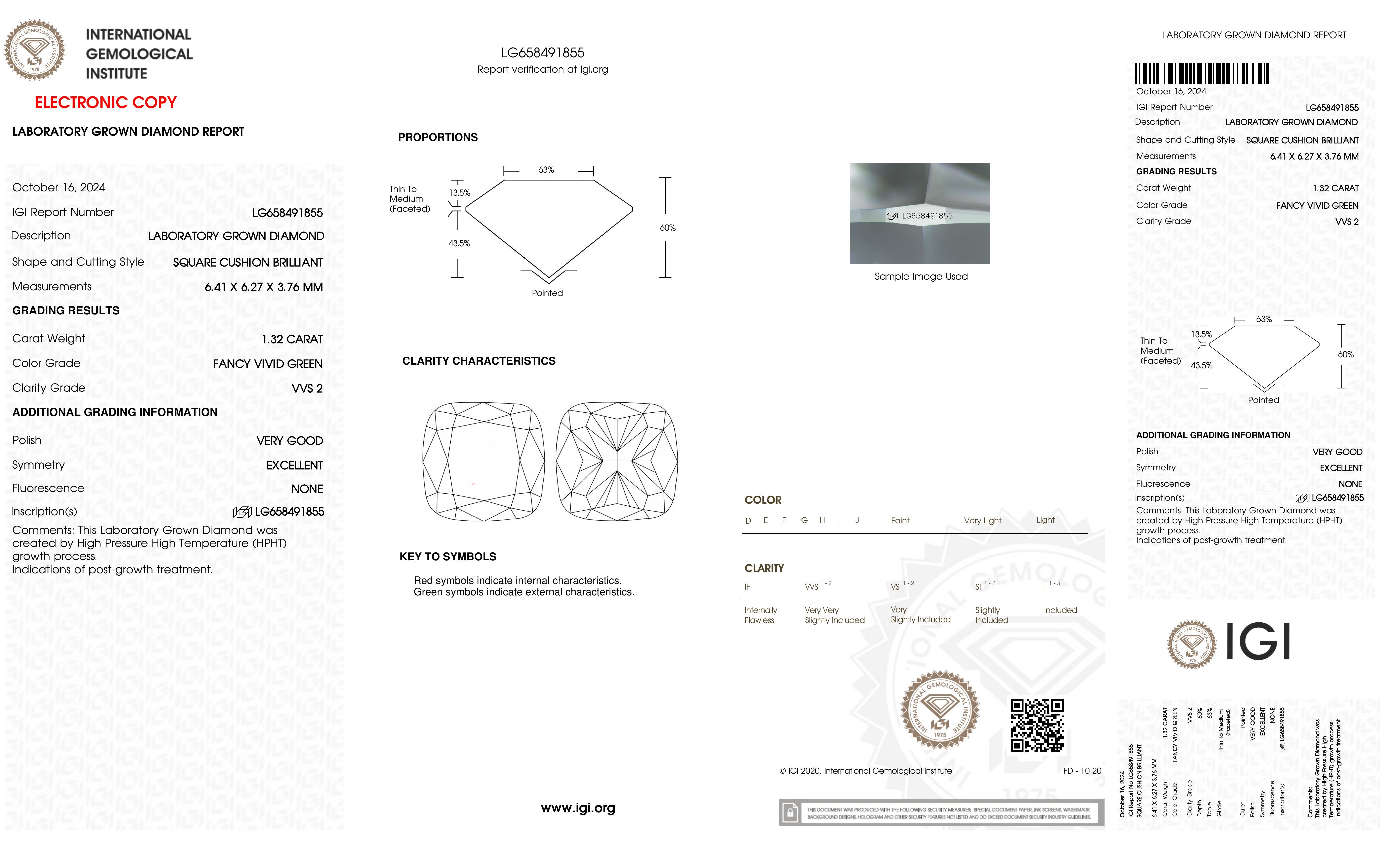 1.32 Carats Lab Grown Green Diamond Loose VVS2 (IGI Cert)
