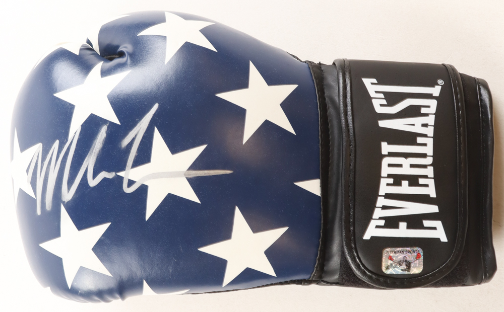 Everlast Blue Stars USA Retired Model Boxing Glove has been hand-signed by Mike Tyson (HOF). Display case is included as well as a full Tyson career statistics plaque as shown. Refer to photos regarding the condition of the item.