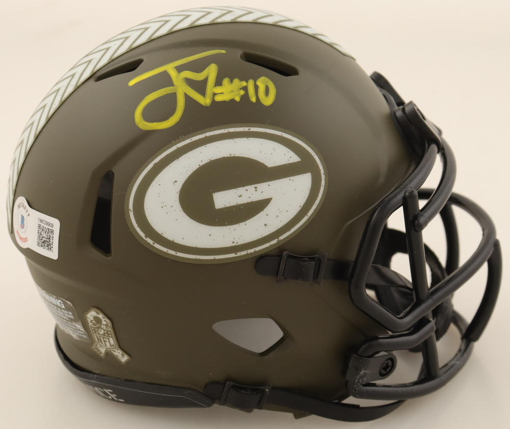 Jordan Love Signed Packers Salute To Service Alternate Speed Mini Helmet (Beckett)