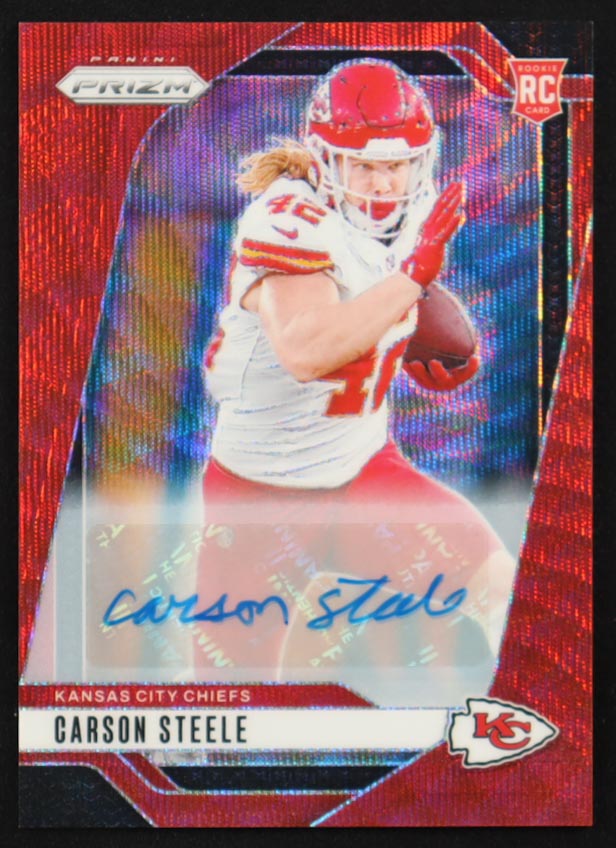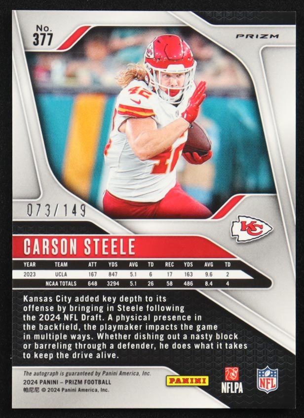 Carson Steele 2024 Panini Prizm Autographs Prizms Red Wave #377 #073/149 RC