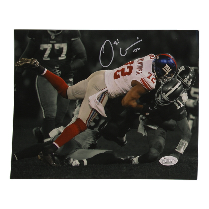 Photo measures 8" x 10" in size and has been hand-signed by Osi Umenyiora (New York Giants).