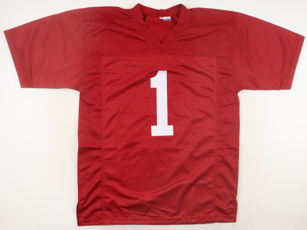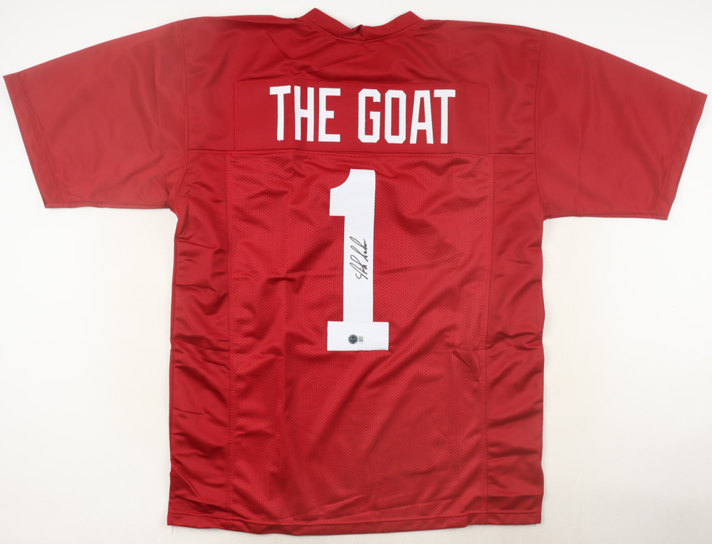 Custom jersey with everything sewn on, size XL. Hand-signed by Nick Saban. Please note, the signature has bled.