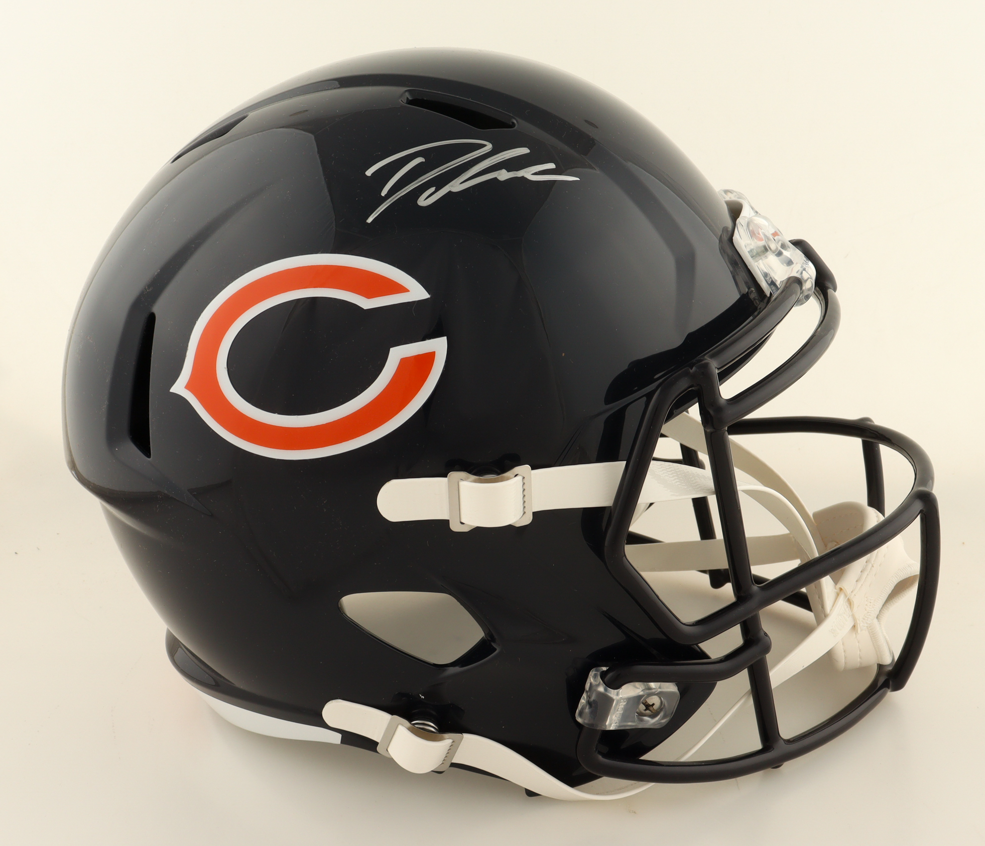 Riddell Chicago Bears full-size replica Speed helmet. Hand-signed by D'Andre Swift.