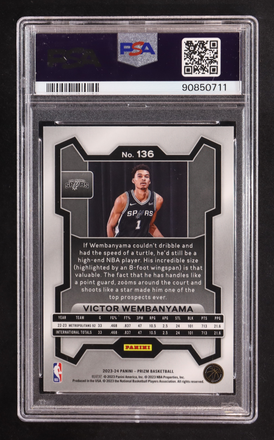 Victor Wembanyama 2023-24 Panini Prizm #136 RC (PSA 9)