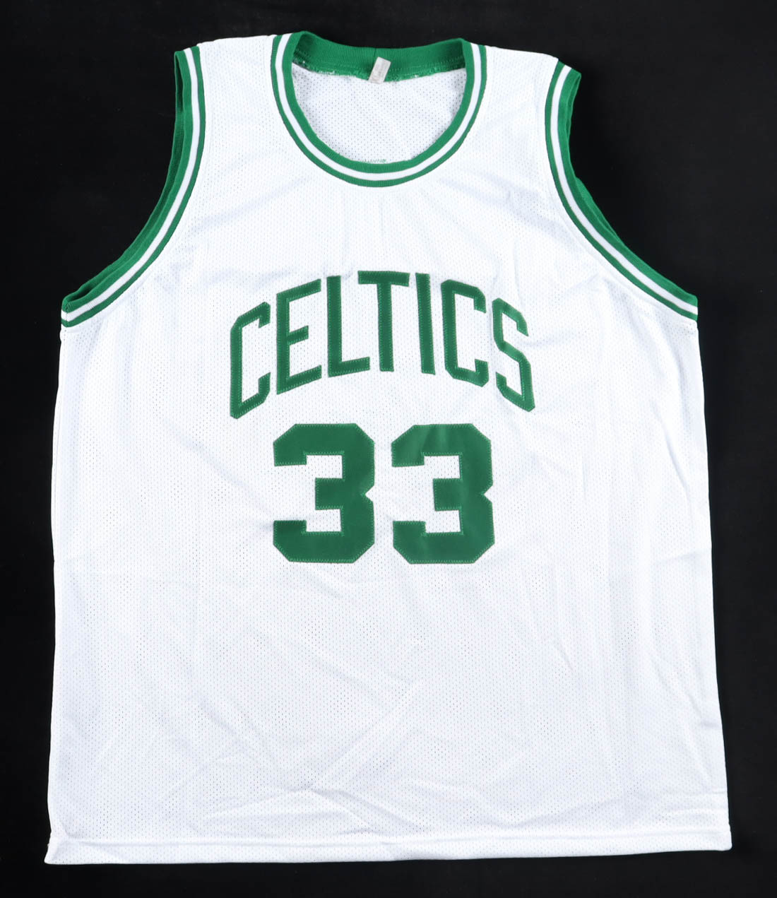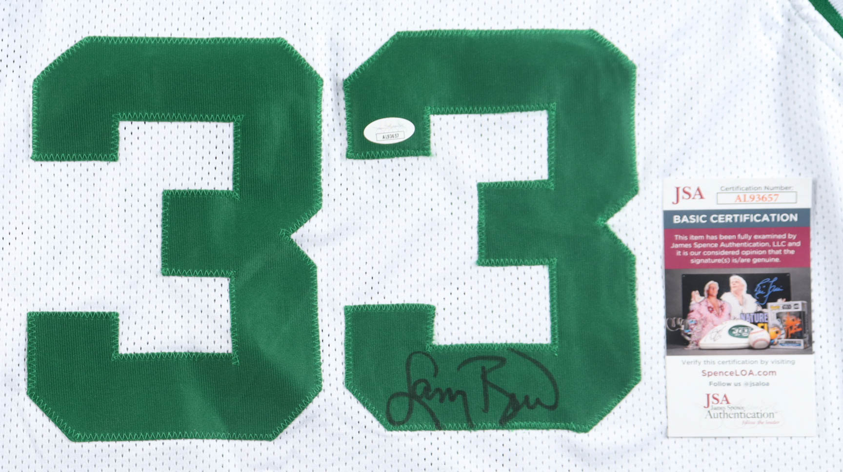 Custom jersey with everything sewn on, size XL. Hand-signed by Larry Bird (Boston Celtics, HOF).