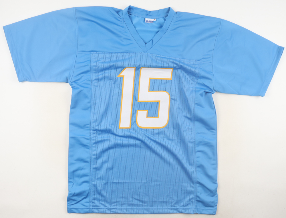 Custom jersey with everything sewn on, size XL. Hand-signed and inscribed by Ladd McConkey.