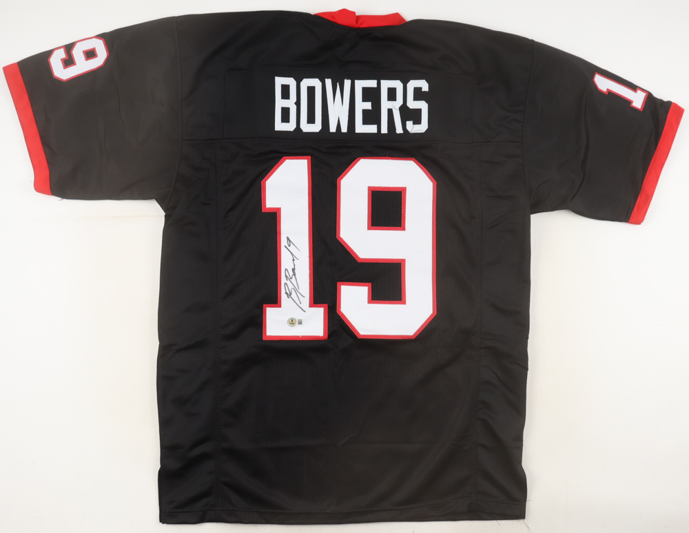 Custom jersey with everything sewn on, size XL. Hand-signed by Brock Bowers.