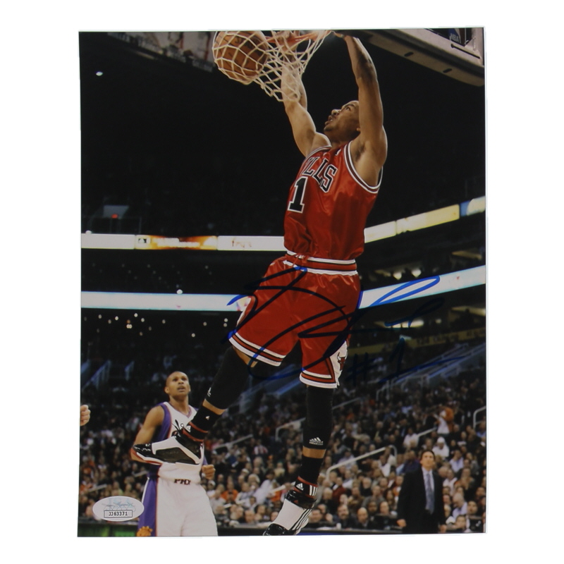 Photo measures 8" x 10" in size and has been hand-signed by Derrick Rose (Chicago Bulls).