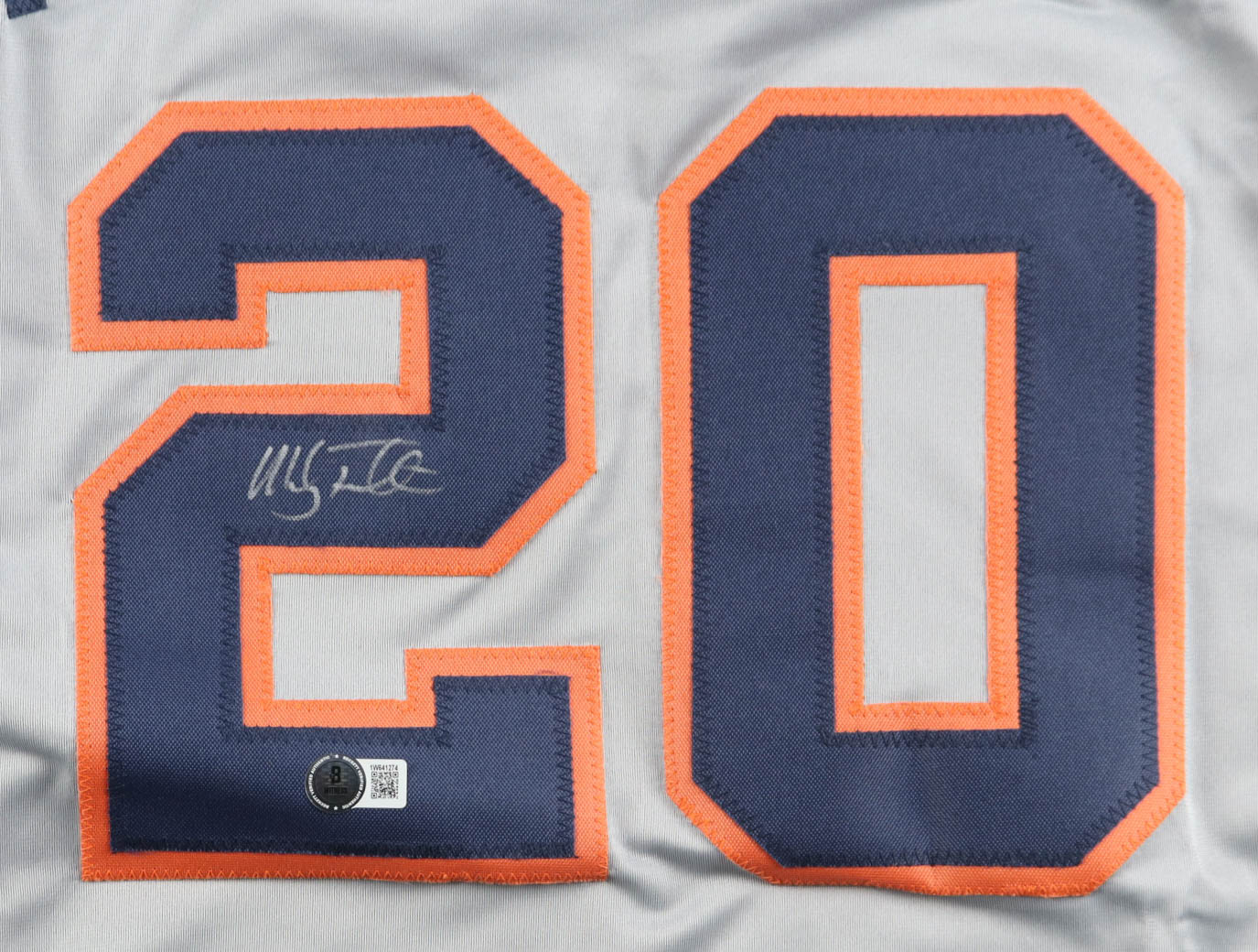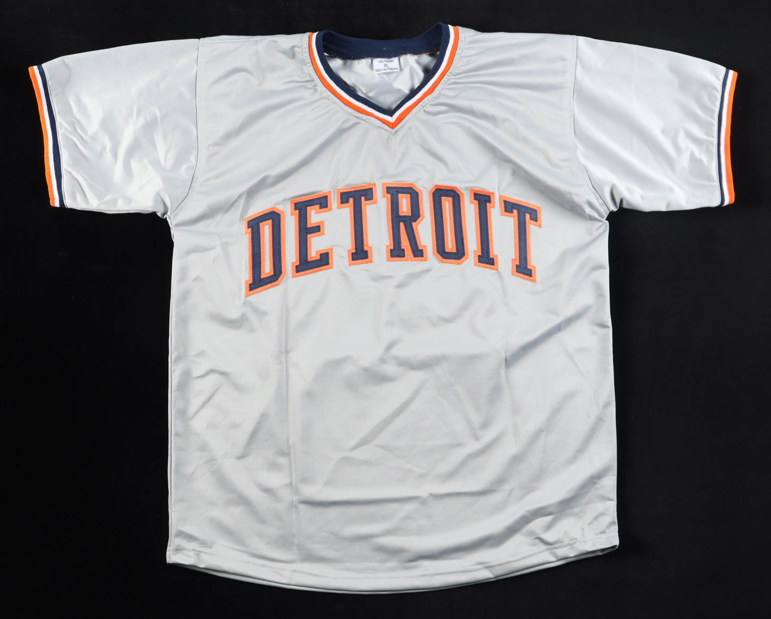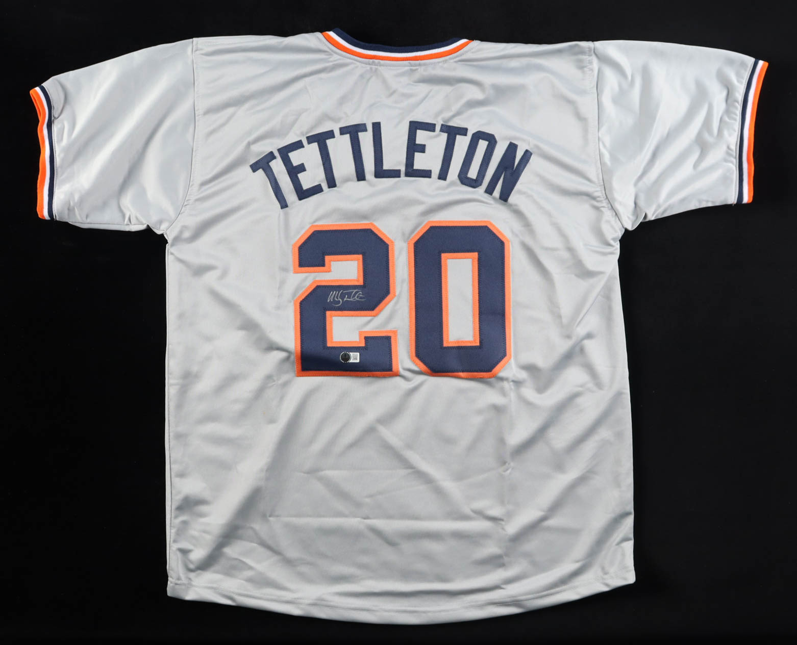 Custom jersey with everything sewn on, size XL. Hand-signed and inscribed by Mickey Tettleton (Detroit Tigers).