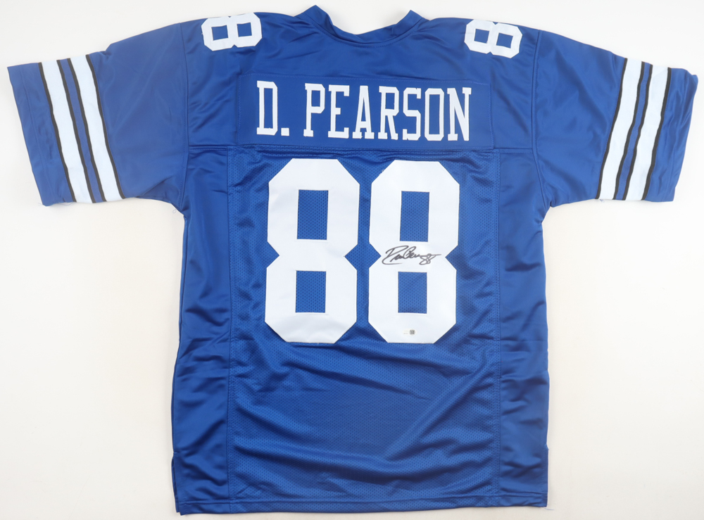 Custom jersey with everything sewn on, size XL. Hand-signed and inscribed by Drew Pearson (HOF).