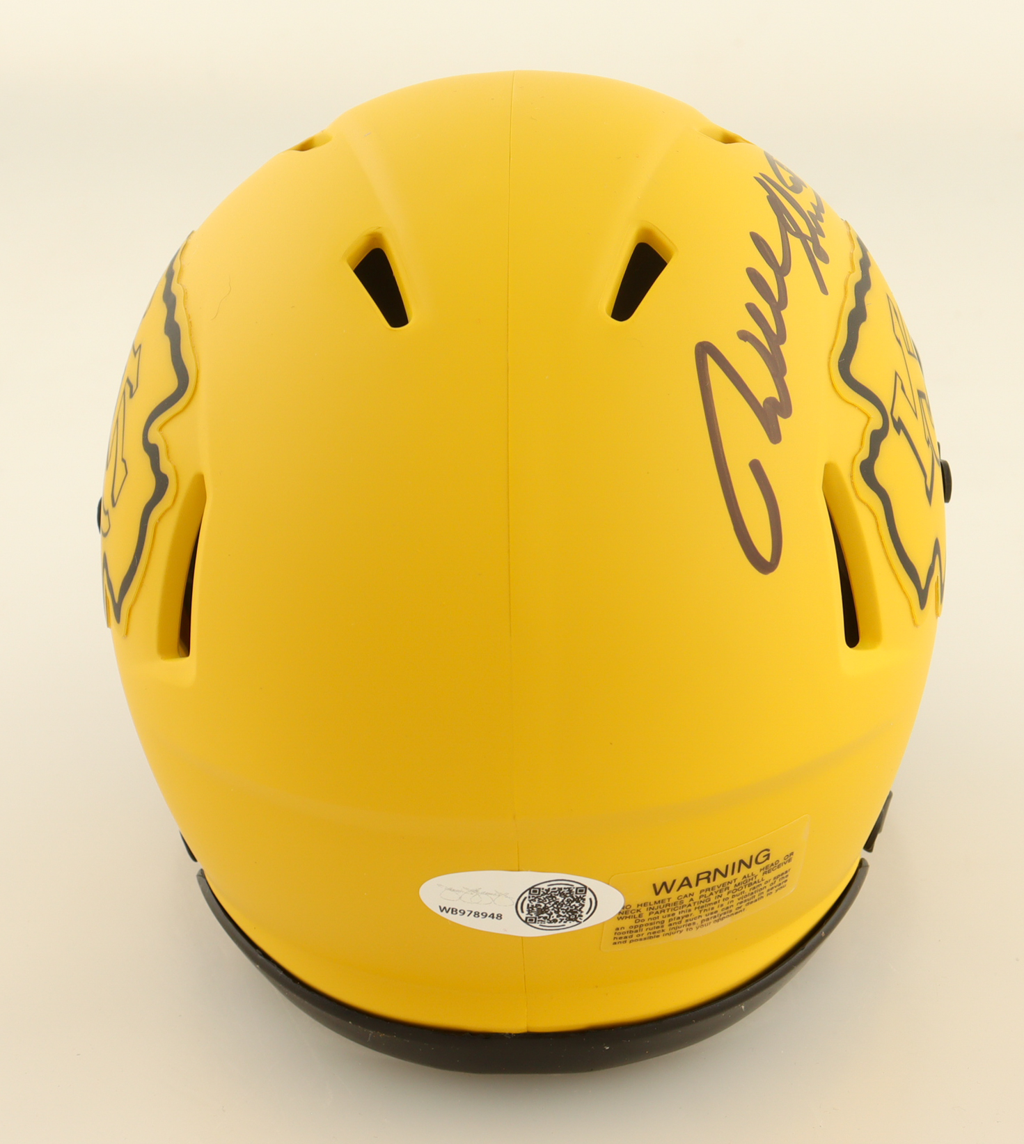 Riddell Kansas City Chiefs Rave Alternate speed mini helmet. Hand-signed and inscribed by Will Shields (HOF).