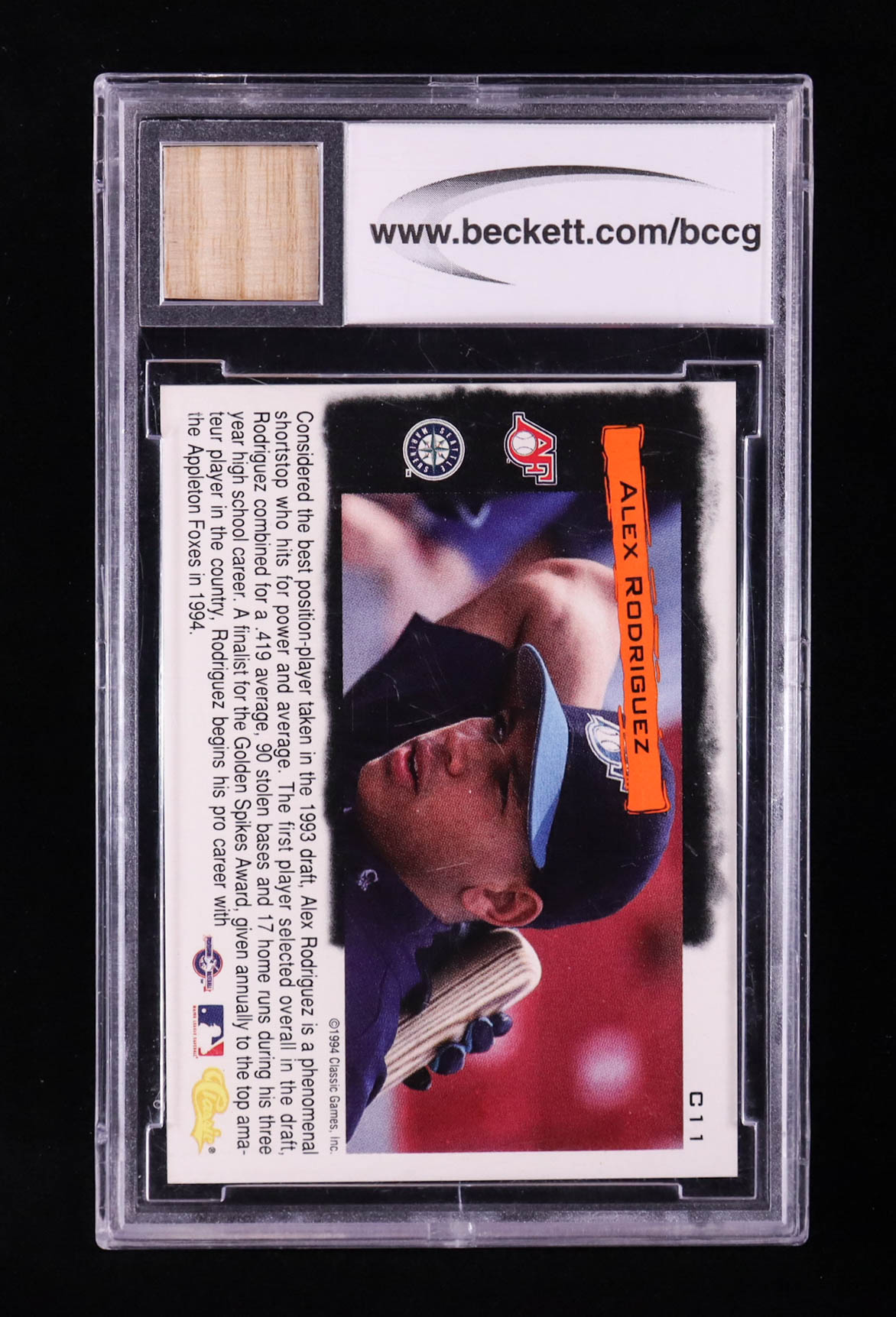 Alex Rodriguez 1994 Classic Cream Of The Crop Game-Used Bat Rookie #C-11 RC (BCCG 10)