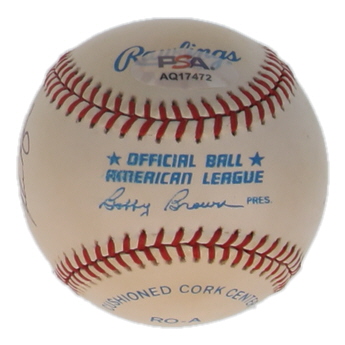 Rawlings Official American League Baseball. Hand-signed and inscribed by Nolan Ryan (Houston Astros, HOF). Please note, ball is naturally toned and stained. Refer to photos regarding the condition of the item.