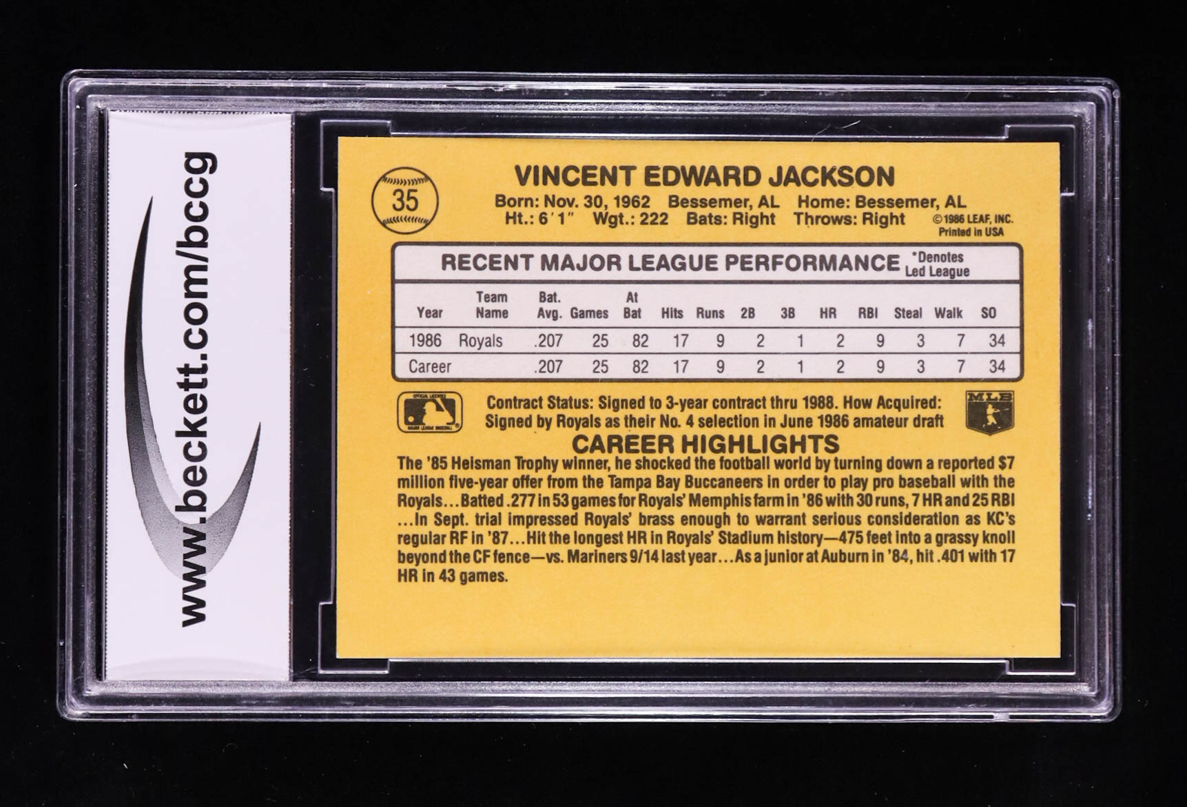 Bo Jackson 1987 Donruss RR #35 RC (BCCG 10)