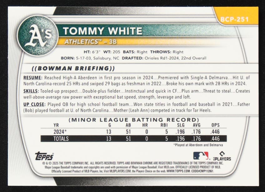 Tommy White 2025 Bowman Chrome Prospects Shimmer Refractors #BCP251 RC