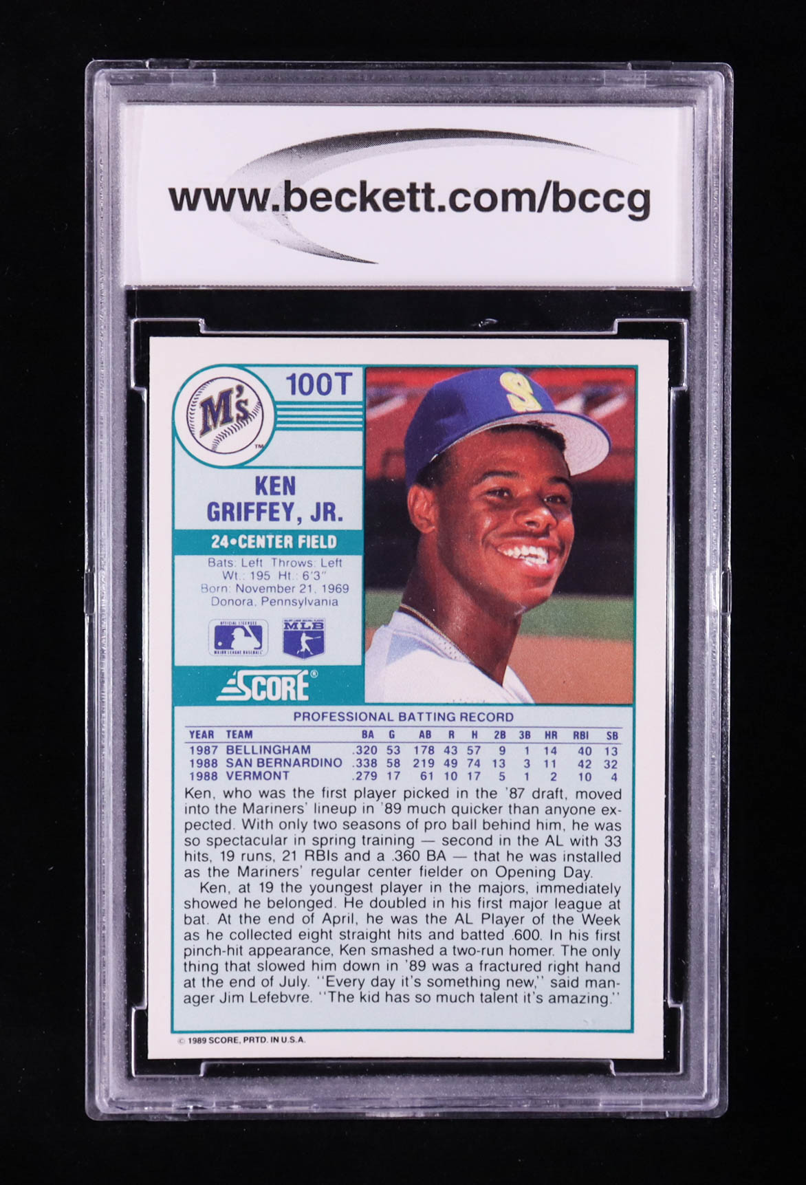 Ken Griffey Jr. 1989 Score Rookie/Traded #100T RC (BCCG 10)