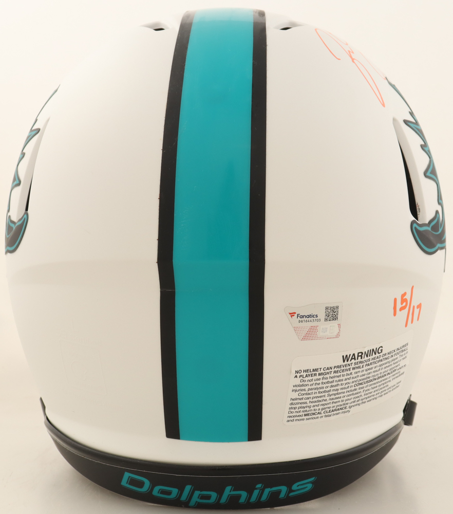 Riddell Miami Dolphins full-size authentic on-field Lunar Eclipse Alternate Speed helmet. Hand-signed and inscribed by Jason Taylor (HOF). Helmet is limited edition #15/17.
